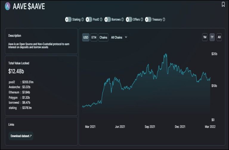 Aave (AAVE), qui figure également dans le top 10, dépasse Lido (LDL) en termes de capitalisation boursière. Cependant, Lido le dépasse en termes de TVL depuis le début de ce mois. Fin février, la TVL d’Aave était de 11,53 milliards de dollars, contre 11,65 milliards de dollars fin janvier. En effet, la valeur totale verrouillée d’Aave a chuté de 17 % entre le 1er janvier et le 1er février 2022.