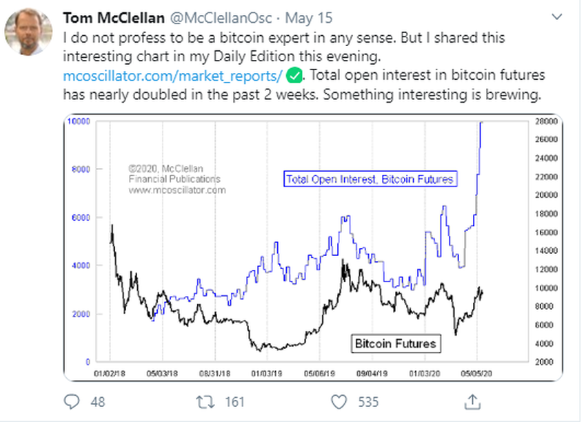 Tom McClellan, analyste technique et commerçant qui compte plus de 36 000 abonnés sur Twitter, a attiré l’attention sur la tendance dans un tweet.