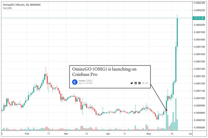 Il est possible que cette accélération du taux de hausse soit dû à l’inscription de l’actif sur Coinbase. C’est ce qu’a remarqué @Lawmaster sur Twitter, lequel a affirmé que la monnaie s’est accrue de 176% depuis son lancement sur Coinbase le 14 mai.