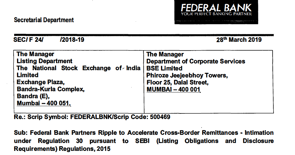 Federal Bank et Ripple