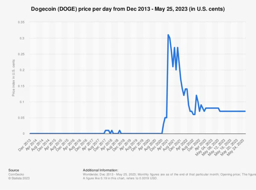 Par exemple, Dogecoin (DOGE), le meme coin favori d’Elon Musk, est né d’un simple mème Internet. Aujourd’hui, il fait partie des plus grandes cryptomonnaies par capitalisation boursière.