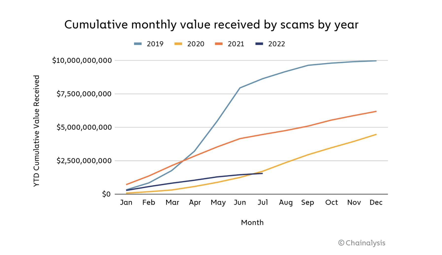 Il n’y a qu’au niveau des actes de piratage que l’année semble partie pour afficher de mauvais résultats. En l’espace de 7 mois, les hacks ont déjà coûté 2,89 milliards à l’industrie de la crypto. La DeFi est la principale proie des malveillants. Ces derniers auraient déjà subtilisé plus de deux milliards sur les plateformes de finance décentralisée.