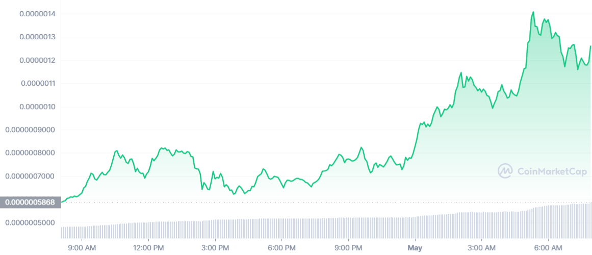En ce lundi 1er mai, le meme coin PEPE vient tout juste de signer un nouvel ATH. Ce, grâce à une hausse de 120 % pendant la nuit.