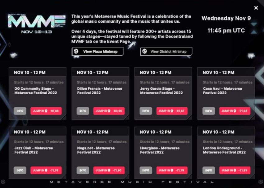 Baptisé #DCLMVMF22, le festival de musique de Decentraland, qui a débuté le 10 novembre, devrait se terminer dimanche. Au programme : musique, innovation, culture et créativité.