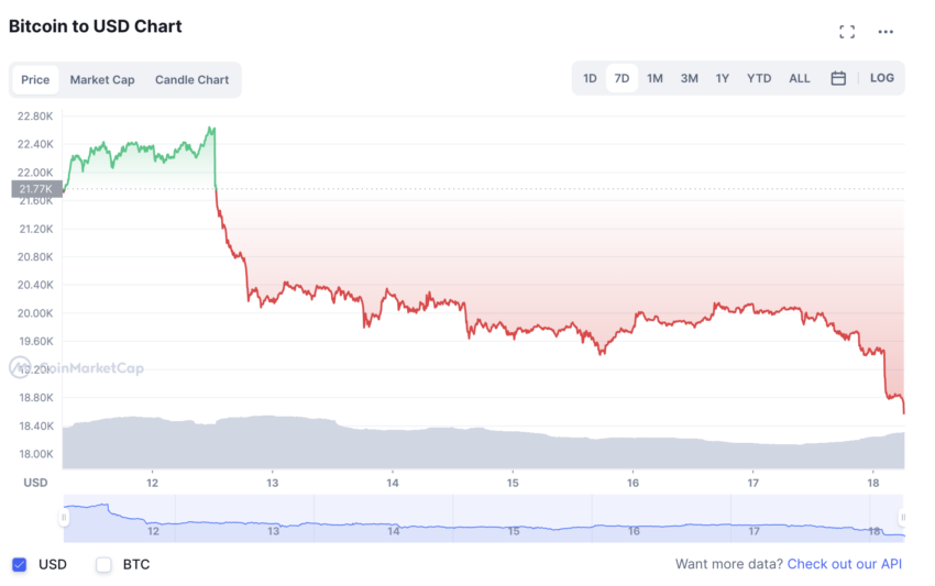 La semaine dernière, Bitcoin a eu un comportement baissier, passant de 22 645 $ à 18 790 dollars, une baisse pouvant atteindre 6,5 % en seulement 24 heures, selon CoinMaketCap. Une récente analyse de BeInCrypto a révélé que pour la troisième fois, deux moyennes mobiles majeures ont réalisé une intersection baissière dans les données du BTC ; cependant, la prédiction se rapproche du prix de la cryptomonnaie à 41 100 $, qui serait atteint le 14 août 2023.
