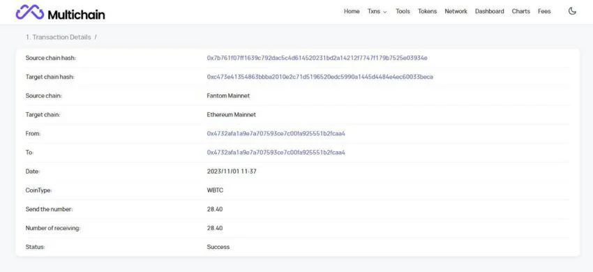 En plus de la transaction d’un million de dollars, plusieurs autres transactions moins importantes ont été effectuées en deux heures. Le PDG de Cyvers.ai a confié à BeInCrypto que “la transaction d’un million de dollars a été effectuée par un adepte du pont Multichain”.