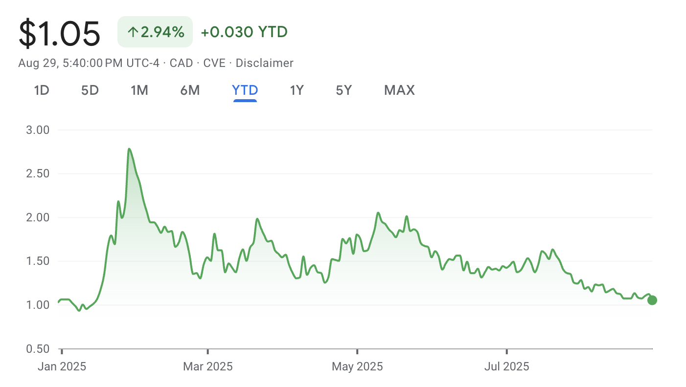 Les actions cotées au Canada de l’entreprise (NDA • CVE) ont atteint un pic de 2,78 $ CA plus tôt cette année. Cependant, depuis février, le prix a chuté d’environ 62 %.