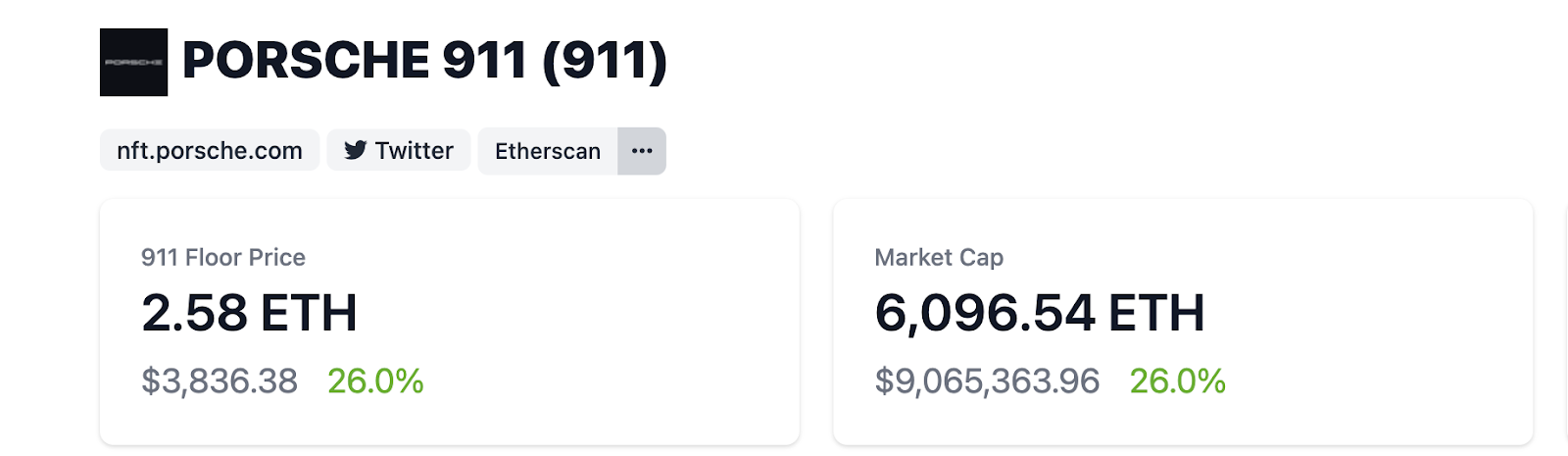 Selon les données de CoinGecko, le prix des NFT Porsche 911 et la capitalisation boursière de l’actif ont augmenté de 26 % ce lundi. La collection est désormais capitalisée à 6 096,54 ETH, soit environ plus de 9 millions de dollars.