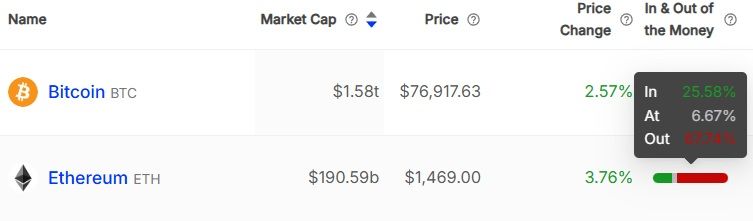 Suite à son énième baisse, la pièce ETH est même retombée sous les 1 500 $, avec plus de 67 % d’investisseurs qui seraient actuellement “Out of the money”. D’après les données d’Intotheblock, il y aurait donc plus de perdants que de gagnants en ce moment, ce qui expliquerait la décision prise par certains investisseurs de se séparer en catastrophe de leurs jetons. Les investisseurs “in the money” seraient donc grandement minoritaires, avec un résultat légèrement supérieur à 25 %.