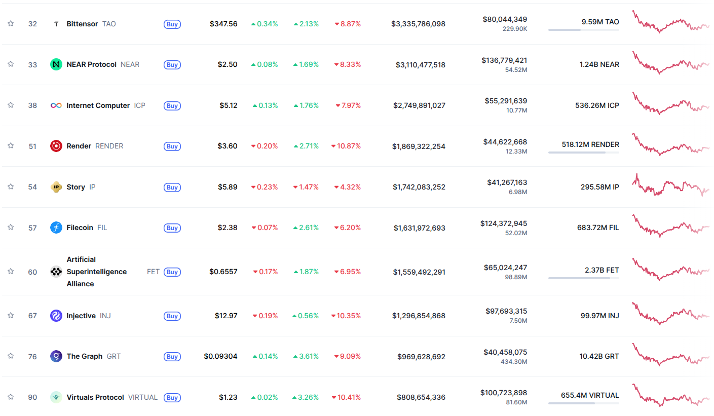 Pendant que le secteur du minage tremble, les crypto IA semblent rester de marbre. On aurait pu penser qu’elles seraient les premières à chuter mais elles stagnent fièrement.