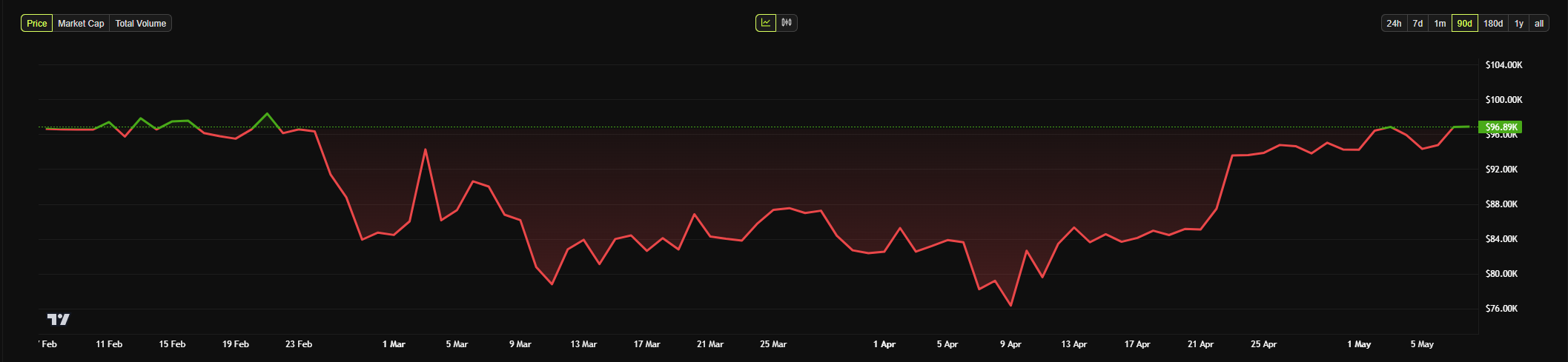 Dans l’ensemble, cela constitue un moteur de Momentum majeur pour la cryptomonnaie. En effet, puisque ces achats récents d’investisseurs fortunés ont poussé le prix du BTC à 97 000 $. Le rallye sans précédent qui a eu lieu au cours des dernières semaines a été alimentée par cette demande.