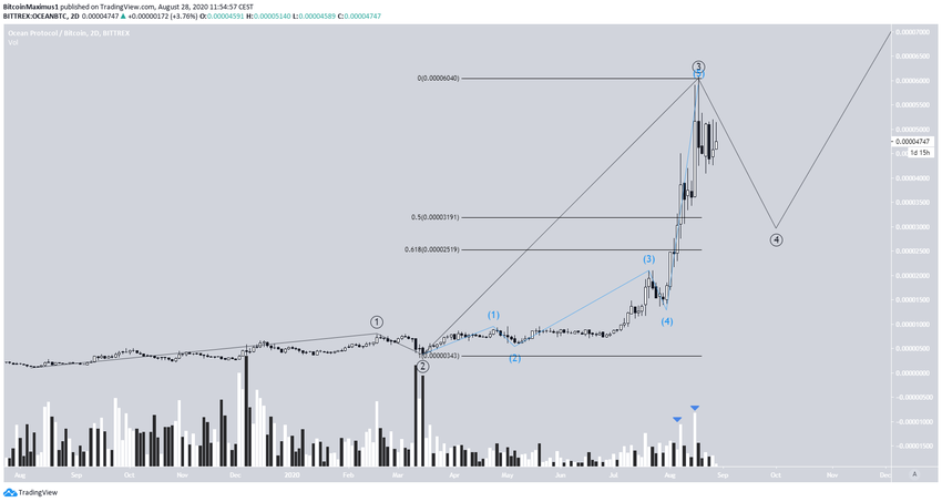 En conclusion, le cours d’OCEAN devrait présenter une correction jusqu’à 3 000 satoshis, avant de démarrer un mouvement ascendant vers un nouveau sommet historique.