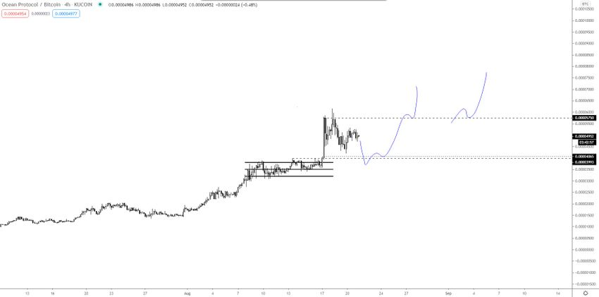 Le trader de cryptomonnaies @TheEurosniper affirme que le cours d’OCEAN pourrait décliner jusqu’à 4 000 satoshis, avant de finalement remonter et atteindre un nouveau sommet historique.