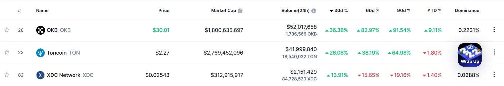 Le jeton confirme ainsi les résultats encourageants d’automne 2022, et maintient un rythme prometteur, ce alors que le marché n’a pour sa part pas encore donné de signe positif pour le début d’année. OKB est en hausse de 91 % sur 90 jours, de 82 % sur les 60 derniers jours mais également de 36 % sur un mois.