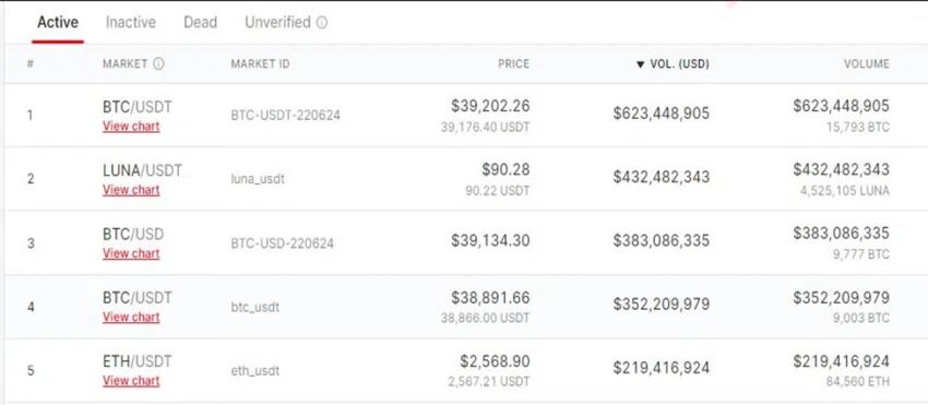 De son côté, OKX propose 343 cryptomonnaies et 28 113 marchés. En ce moment, les paires les plus populaires sur l’exchange sont : BTC/USDT, LUNA/USDT, BTC/USD et ETH/USDT.