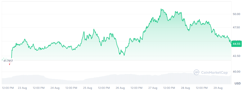 Nous vous avions également prévenu que Hyperliquid risquait de dégringoler cette semaine et cela n’a pas manqué ! Après avoir brièvement tutoyé les 50 $, le jeton a subi une correction brutale, dégringolant jusqu’à 44 $.