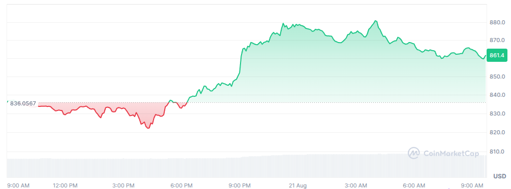Actuellement autour de 865 $, le token ne se trouve qu’à quelques encablures de ce pic, signalant une possible phase de stabilisation avant une nouvelle ascension. Mais qu’est-ce qui alimente cette performance explosive ?