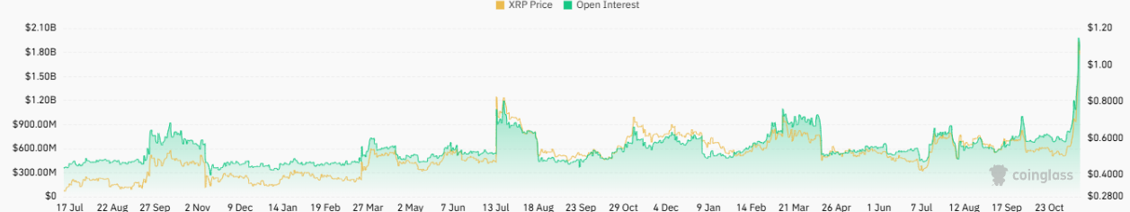 Cependant, outre le cours du XRP, les contrats à terme basés sur lui ont eux aussi explosé. L’intérêt ouvert a grimpé de plus de 20 % en moins d’une journée ce samedi, démontrant que les investisseurs misent gros sur le projet.