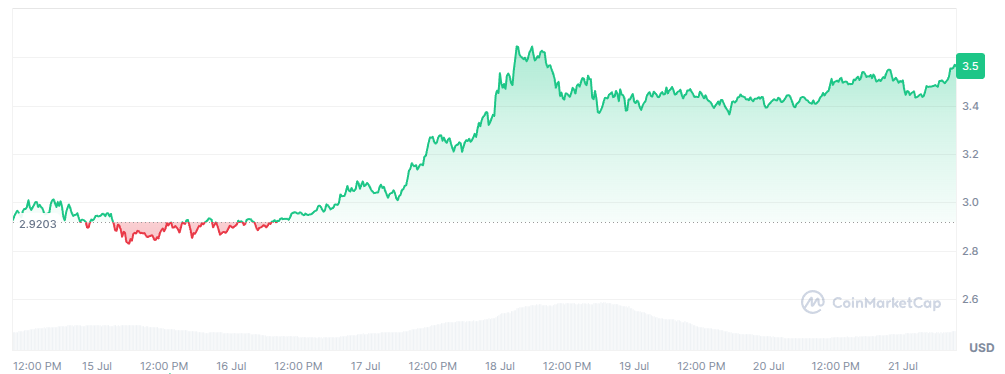 Les analystes restent donc vigilants face à une potentielle vague de ventes massives, notamment si un seuil technique clé est rompu, ce qui pourrait déclencher une correction vers 3,00 $. Côté technique, tout va se jouer dans les prochains jours. Si le prix de l’altcoin franchit les 3,65 $, un rallye pourrait le mener jusqu’à 4,70 $, voire 6,13 $ à terme. Mais le RSI supérieur à 80 indique un risque de surachat, laissant entrevoir une possible consolidation.