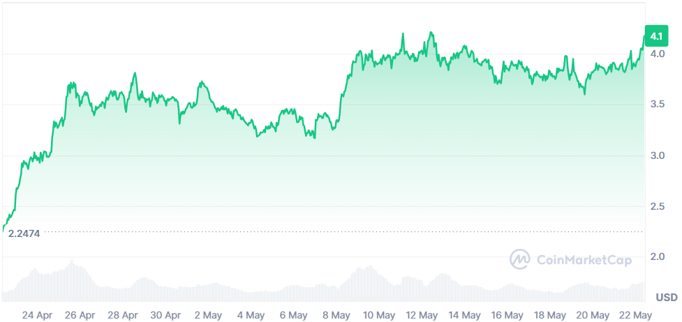 En dépit des performances sans failles de XRP, la crypto SUI, le surpasse tant en performance qu’en popularité auprès des institutions. Cela se remarque déjà sur le marché où cette dernière a bondi de 82% le mois dernier pour trôner à 4 $ aujourd’hui. Quelle différence avec XRP qui n’a gagné, lui, que 15 % sur le même laps de temps !
