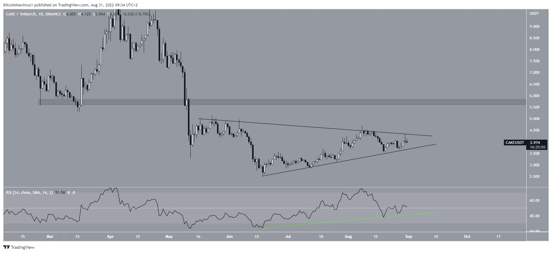 PancakeSwap (CAKE) s’approche de la fin d’un schéma neutre de court terme. Son passage au-dessus ou en-dessous de ce schéma pourrait déterminer la direction de la tendance future.
