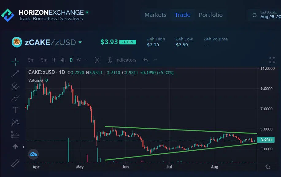 La plateforme DeFi @HorizonProtocol a partagé sur Twitter un graphique de PancakeSwap, lequel montre un triangle symétrique en place depuis mai.