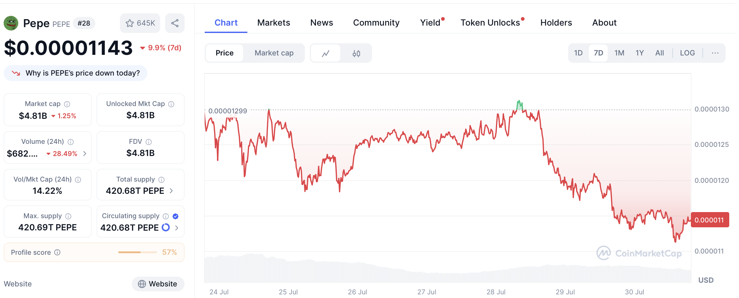 Alors que le memecoin PEPE vacille à l’approche d’une zone critique, plusieurs analystes estiment qu’un retournement baissier pourrait bientôt s’amorcer. Mais certains signaux techniques laissent encore la porte ouverte à un rebond surprise.