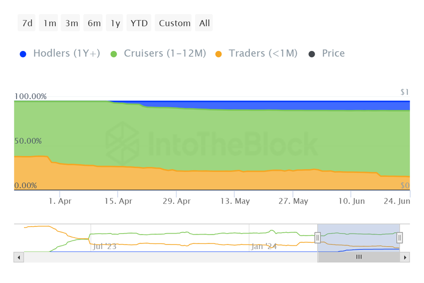 Ce mouvement suggère que les investisseurs favorisent une détention un peu plus longue que du court terme. Ainsi, le fait que les investisseurs deviennent des holders de moyen terme signalent une confiance accrue dans la performance à venir de l’actif.