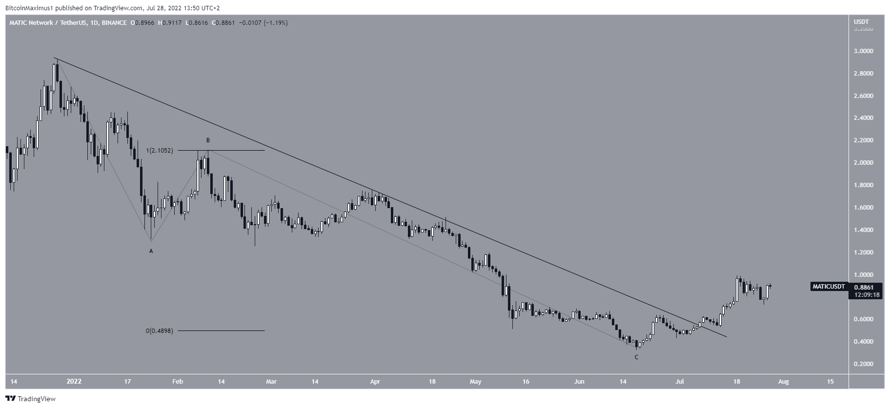 Le cours de la crypto MATIC décline sous une ligne de résistance descendante depuis son sommet record (ATH) de 2,72 $ atteint en décembre 2021. Son mouvement de déclin a mené à un creux de 0,316 $ atteint le 18 juin.