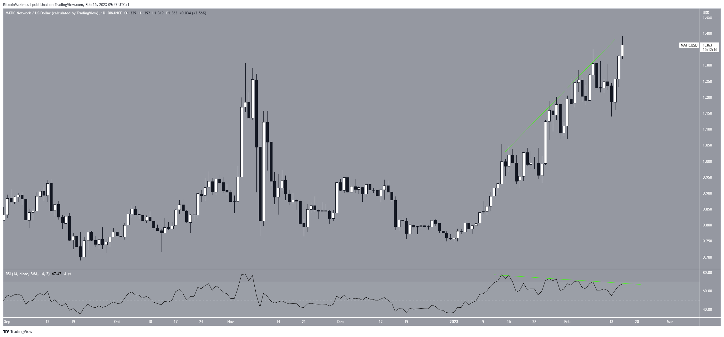 Toutefois, si le RSI quotidien dépasse sa ligne de tendance, cela signifierait que le mouvement de hausse se poursuivra. L’objectif pour MATIC étant la prochaine résistance située à 1,77 $.