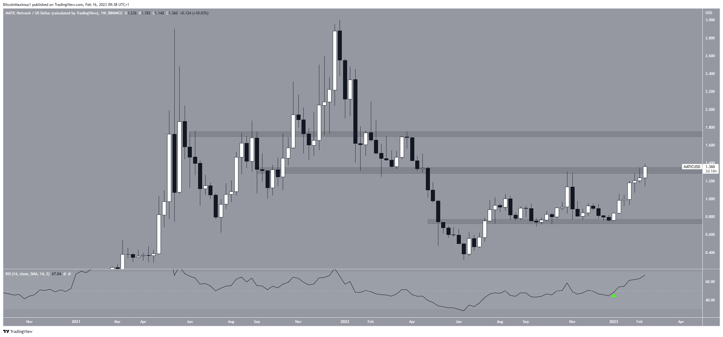 Le cours MATIC cherche actuellement à dépasser la zone de résistance des 1,35 $. Celle-ci servait de support pendant la majorité de l’année 2022. Ainsi, si le cours franchit cette zone, il pourrait s’accroître jusqu’à la prochaine résistance située à 1,73 $.