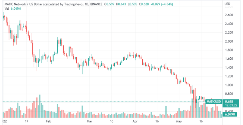 Polygon (MATIC) a ouvert l’année avec un prix de négociation de 2,53 $. Par la suite il a atteint un creux de 52 semaines de 0,5084 $ le 12 mai et s’échanger pour 0,6285 $ au moment de la rédaction.