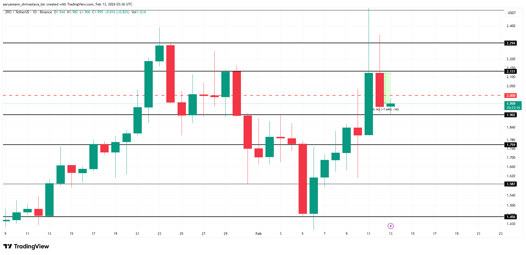Si les acheteurs défendent le niveau de 1,90 $, ZRO pourrait tenter de se stabiliser. Un rebond pourrait alors propulser le prix au-dessus de la résistance des 2,00 $. Un momentum soutenu jusqu’à 2,13 $ annulerait la perspective baissière et signalerait un regain de confiance des investisseurs quant aux perspectives de reprise de l’altcoin.