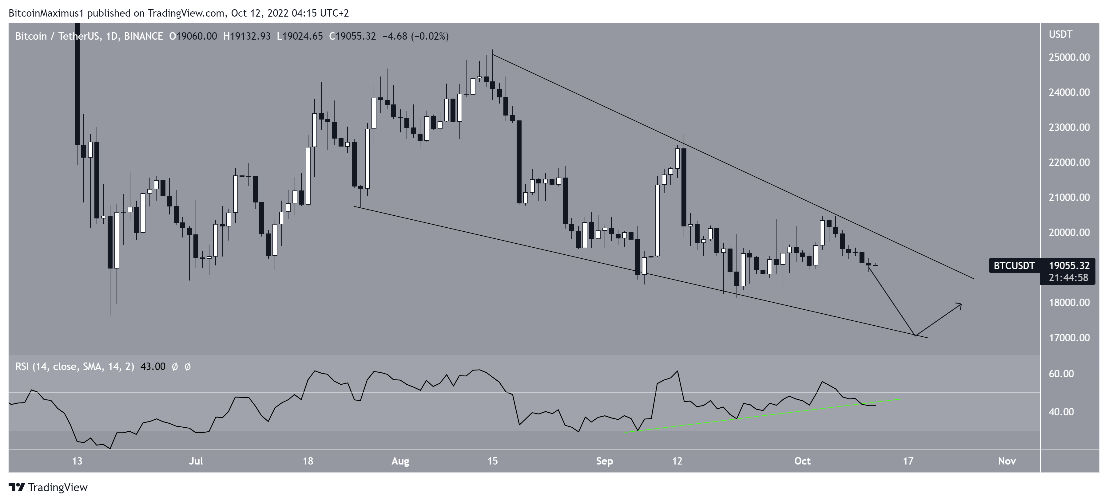 Le cours de Bitcoin (BTC) évolue à l’intérieur d’une figure de biseau descendant et pourrait terminer sa correction après une baisse finale.