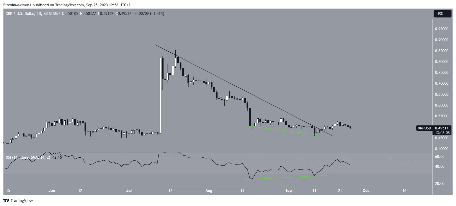 L’analyse technique du graphique quotidien montre que le cours XRP est en hausse depuis le 11 septembre. En effet, le token suit une trajectoire haussière depuis qu’il a complété un schéma de double bottom, lequel est considéré comme un signal positif.