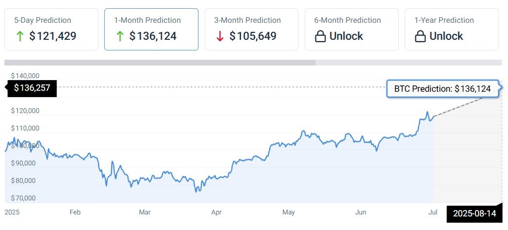 SponsoredMême s’il a légèrement corrigé depuis (118 850 $), le cours du Bitcoin reste bien positionné en vue de futurs gains. Les prédictions sont d’ailleurs de son côté, avec ChatGPT qui vise la lune et Coincodex qui s’attend à des nouveaux record d’ici un mois maximum.
