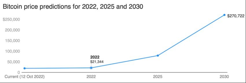 Prédictions cours Bitcoin pour fin 2022, 2025 et 2030
