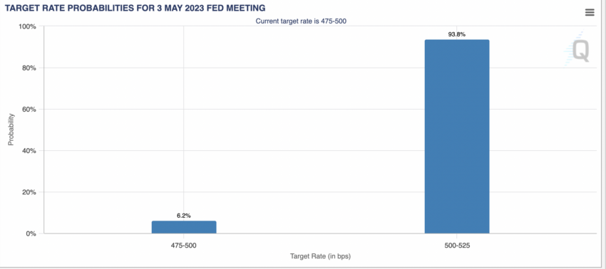 Au moment où nous écrivons ces lignes, plus de 90 % des acteurs du marché s’attendent à une augmentation de 0,25 point de base. Chose qui pourrait avoir un impact négatif sur le marché crypto.