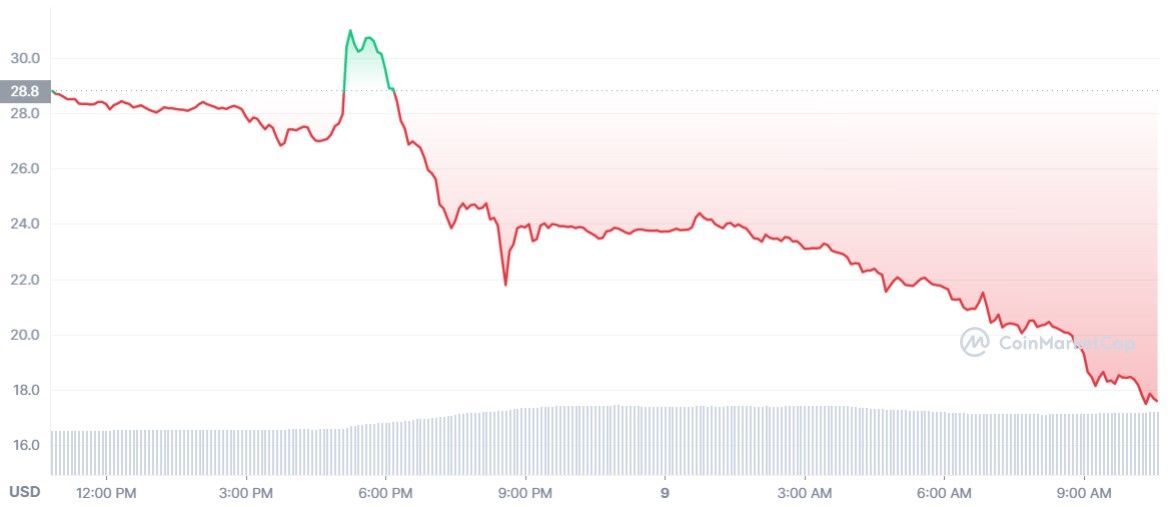 Au moment de rédaction, Solana a vu son jeton dégringoler de 40 % et les courbes ne laissent aucun doute sur la suite des événements. Pour l’instant, aucune remontée n’est à entrevoir sur du court terme.