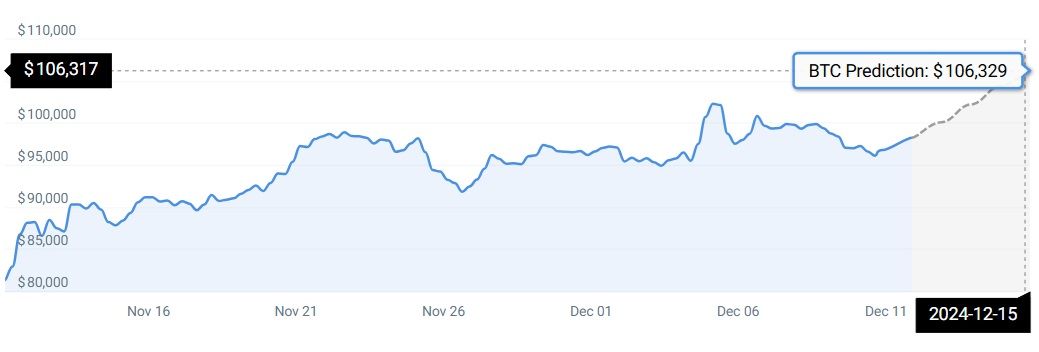 En tout cas, c’est à quoi s’attend la plateforme prédictive d’ici dimanche pour le prix du BTC. Le chemin des 100 000 $ pourrait être atteint dès demain alors qu’un nouvel ATH serait réalisé ce samedi.