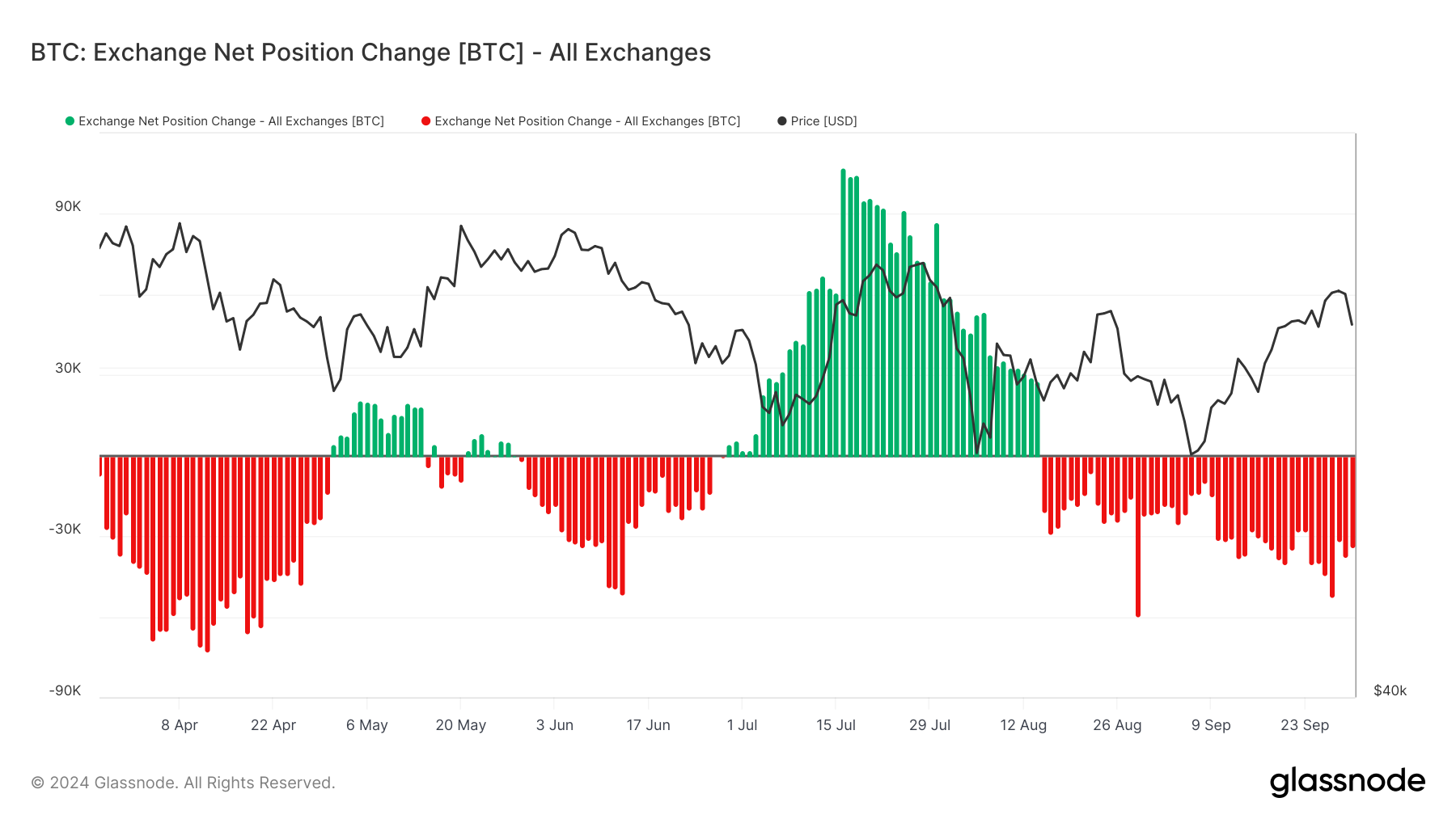 D’autre part, l’élan macroéconomique global pour Bitcoin reste fort. Le changement de position net des exchanges, qui suit le mouvement de BTC entrant et sortant des portefeuilles d’échange, a montré des sorties constantes. Cette situation est généralement perçue comme un indicateur haussier car cela suggère que les investisseurs déplacent leur pièces hors des plateformes d’échange, probablement pour le conserver à long terme.