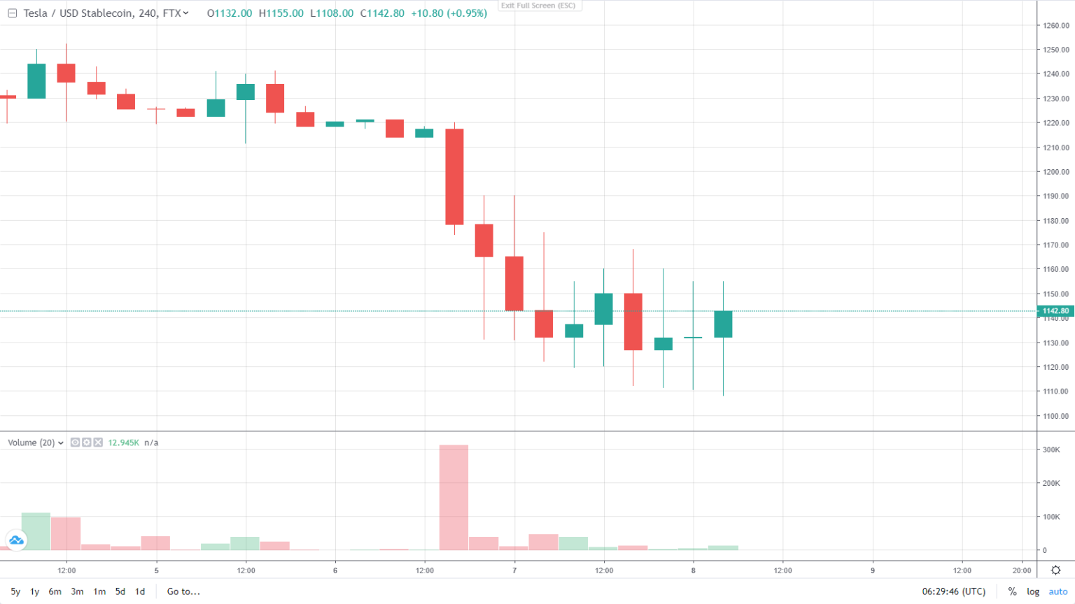 Sur l’exchange FTX, les prix des tokens d’actions de Tesla ont chuté de 6% suite à un sondage Twitter publié par Elon Musk. Le PDG de Tesla a demandé à ses abonnés s’il devait vendre 10% de ses parts, et 55% ont répondu oui.