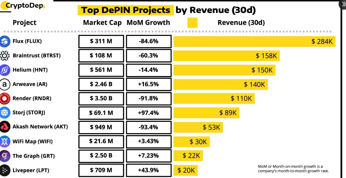 Vous êtes intéressés par les projets crypto DePIN ? Voici ceux qui génèrent le plus de revenus actuellement.