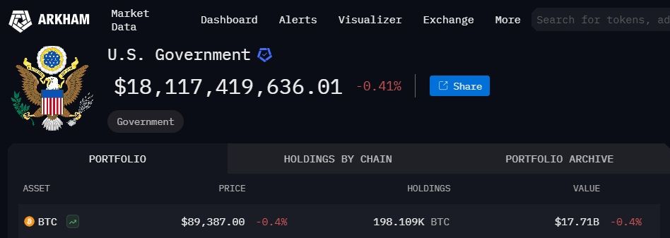 A l’heure actuelle, les possessions seraient de 198 109 BTC d’après Arkham alors que treasuries Bitbo estime à 207 189 jetons les détentions des Etats-Unis.