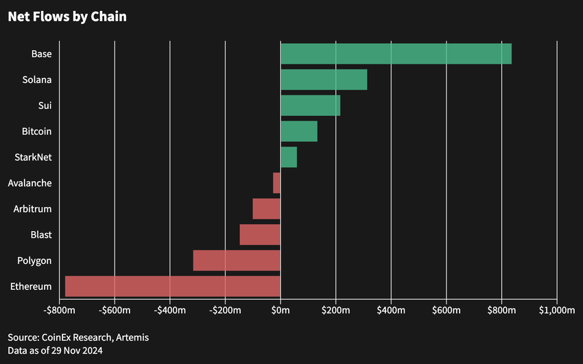 Virtual Protocol se concentre sur les Agents AI de jeu dans des environnements 3D, tandis que Clanker simplifie la création de tokens grâce aux tags Farcaster, entraînant plus de 4 700 déploiements de tokens. Cette innovation est soutenue par une augmentation de la liquidité au sein de l’écosystème Base, qui a récemment dépassé Solana, enregistrant une entrée nette de 835,9 millions de dollars.