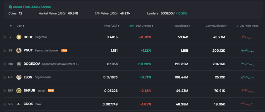 La victoire de Trump face à Kamala Harris, remportant tous les États pivots et assurant le contrôle républicain du Congrès, a posé les bases de politiques favorables aux cryptomonnaies. Elon Musk, soutien éminent de Trump et enthousiaste du dogecoin, a suscité l’intérêt pour les memecoin sur le thème d’Elon à travers l’écosystème des cryptomonnaies.