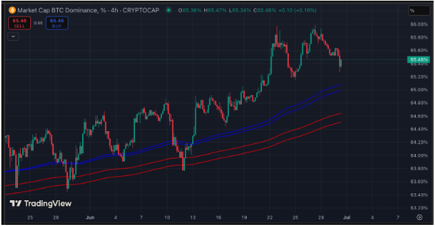 La Domination de BTC a maintenu une tendance haussière tout au long de juin, sans signes de faiblesse. Le retour de la saison des alts semble encore être une perspective lointaine.