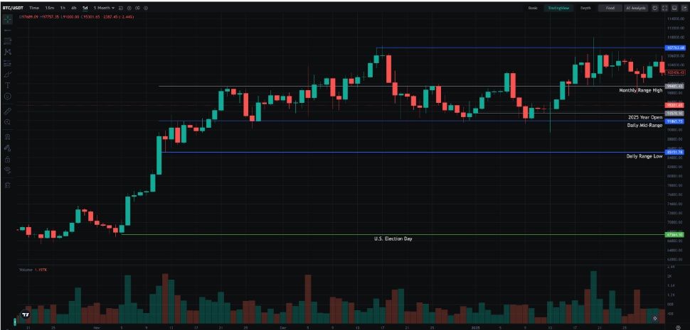 Bitcoin a commencé l’année à environ 92 500 $ et a réussi à dépasser à plusieurs reprises les 100 000 $, faisant preuve de résilience malgré un contexte macroéconomique turbulent. La Réserve Fédérale a maintenu ses taux d’intérêt entre 4,25 % et 4,50 %, en raison d’un marché du travail solide et d’une inflation persistante. De son côté, la Banque du Japon a relevé son taux directeur de 0,25 % à 0,50 %.