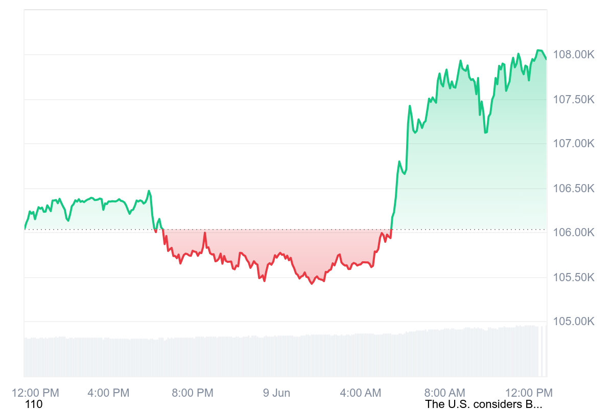 Actuellement, le cours du BTC se négocie à 108 000 $, après une hausse journalière de 1,59 %. Pour rappel, le dernier record en date est extrêmement proche, toujours situé à 111 970 $.