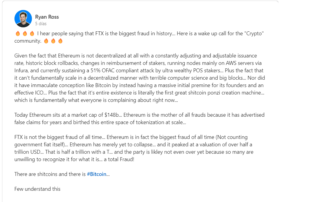 Cela dit, il y a, comme toujours, de nombreux critique d’Ethereum. En effet, certains membres de la communauté qualifie le projet de plus grande fraude du marché, dépassant même FTX.